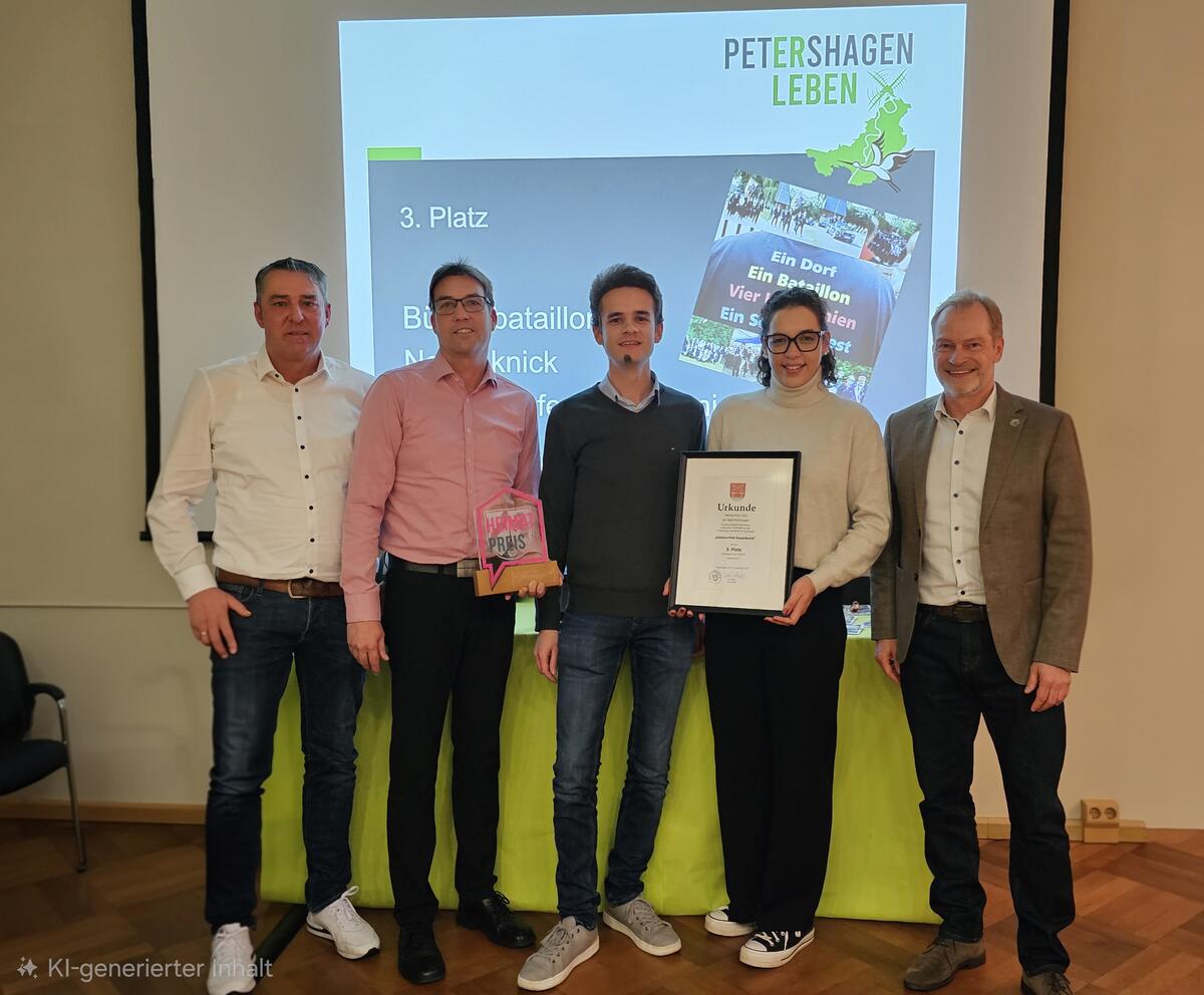 Am 02. Dezember 2025 fand die diesjährige Preisverleihung des 4. Petershäger Heimat-Preises statt. Unter dem Motto „Heimat-Preis 2.0“ wurden Projekte aufgefordert, sich via Video zu bewerben. Ein maximal 90-sekündiges Video sollte das jeweilige Projekt vorstellen und zeigen, warum das Projekt so besonders ist. Was ist beispielhaft, was ist innovativ, was ist nachhaltig, wie war der partizipative Ansatz und wo ist der Bezug zur Heimat bzw. zur lokalen Identität? Durch das neue Format hatten auch alle Preisträgerinnen und Preisträger der vergangenen Jahre die Möglichkeit, sich erneut zu bewerben.